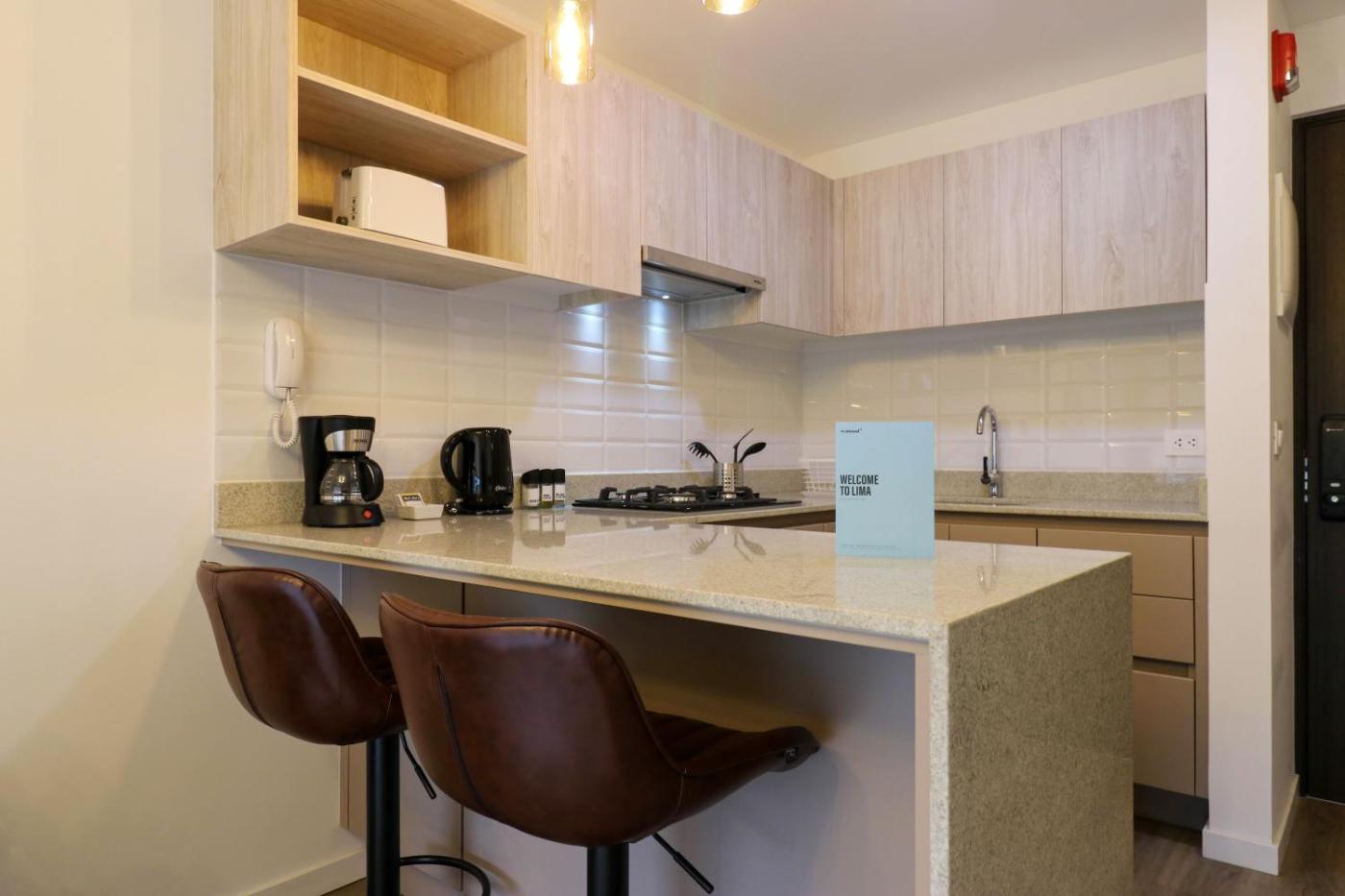Los Pinos by Wynwood House in Lima offers a spacious apartment with a balcony. Guests enjoy a fully equipped kitchen, private bathroom, and a comfortable seating area.